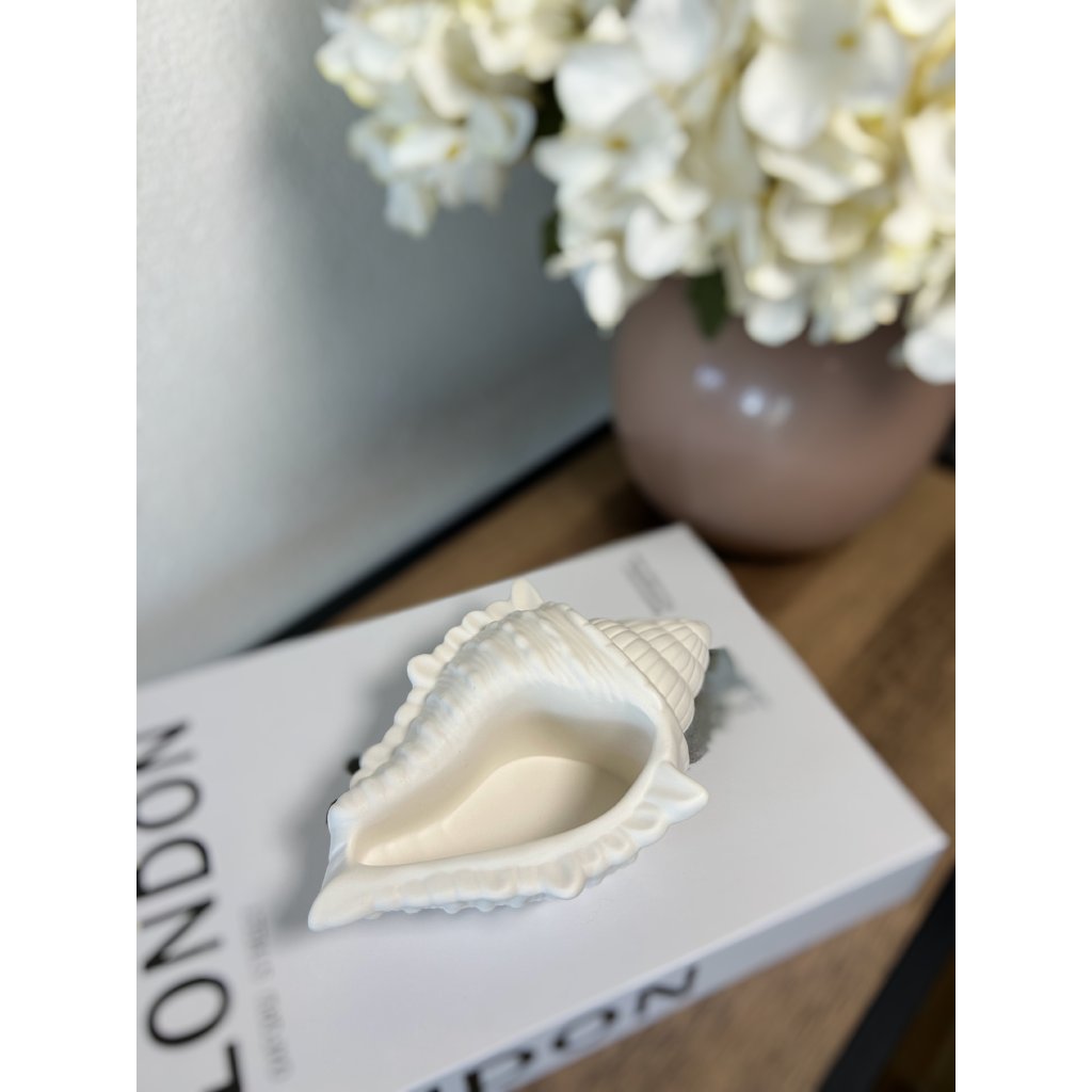 Ručne vyrábaná dekorácia v tvare mušle z jesmonitu – každý kus je originál.