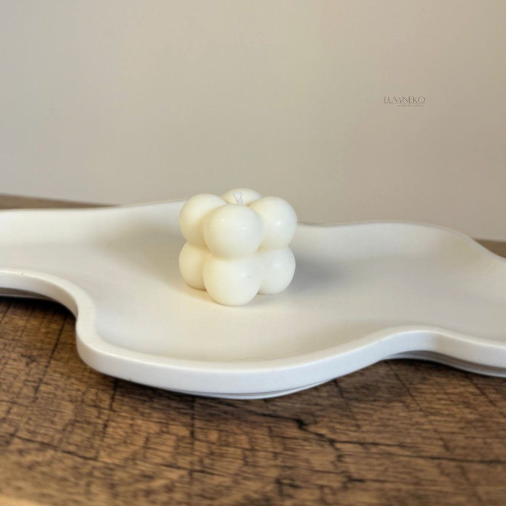 Ručne odlievaná dekoratívna sviečka z prírodného sójového vosku v obľúbenom „bubble“ dizajne.