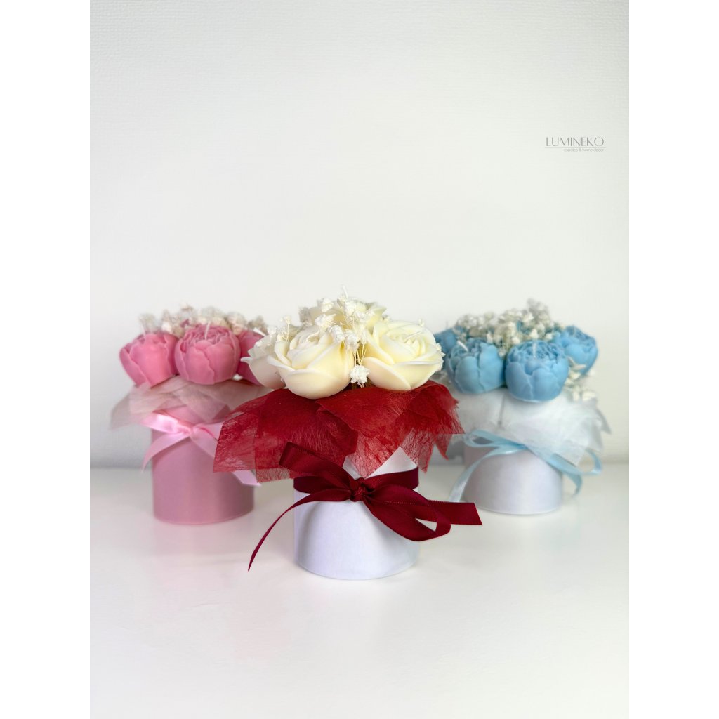 Sviečkový kvetinový box je výnimočný darček, ktorý spája krásu kvetov a čaro svetla v jednom elegantnom prevedení.