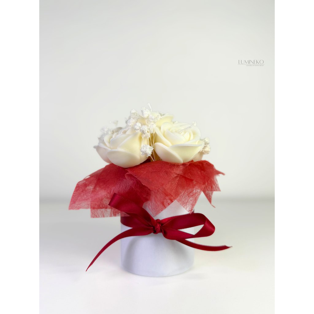 Box obsahuje 6 „večných“ ruží zo 100 % prírodného sójového vosku s jemnou vôňou rozkvitnutých ruží. Kvety nikdy nezvädnú a keď sa rozhodnete pre zmenu, môžete ich jednoducho zapáliť a premeniť túto dekoráciu na vonnú sviečku.