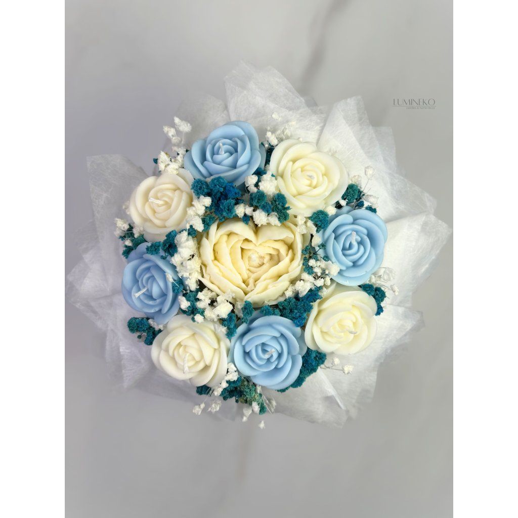 Box obsahuje 9 „večných“ kvetín zo 100 % prírodného sójového vosku s jemnou vôňou rozkvitnutých ruží. Kvety nikdy nezvädnú a keď sa rozhodnete pre zmenu, môžete ich jednoducho zapáliť a premeniť túto dekoráciu na vonnú sviečku.