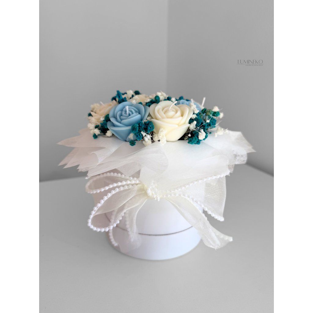 Sviečkový kvetinový box je výnimočný darček, ktorý spája krásu kvetov a čaro svetla v jednom elegantnom prevedení.