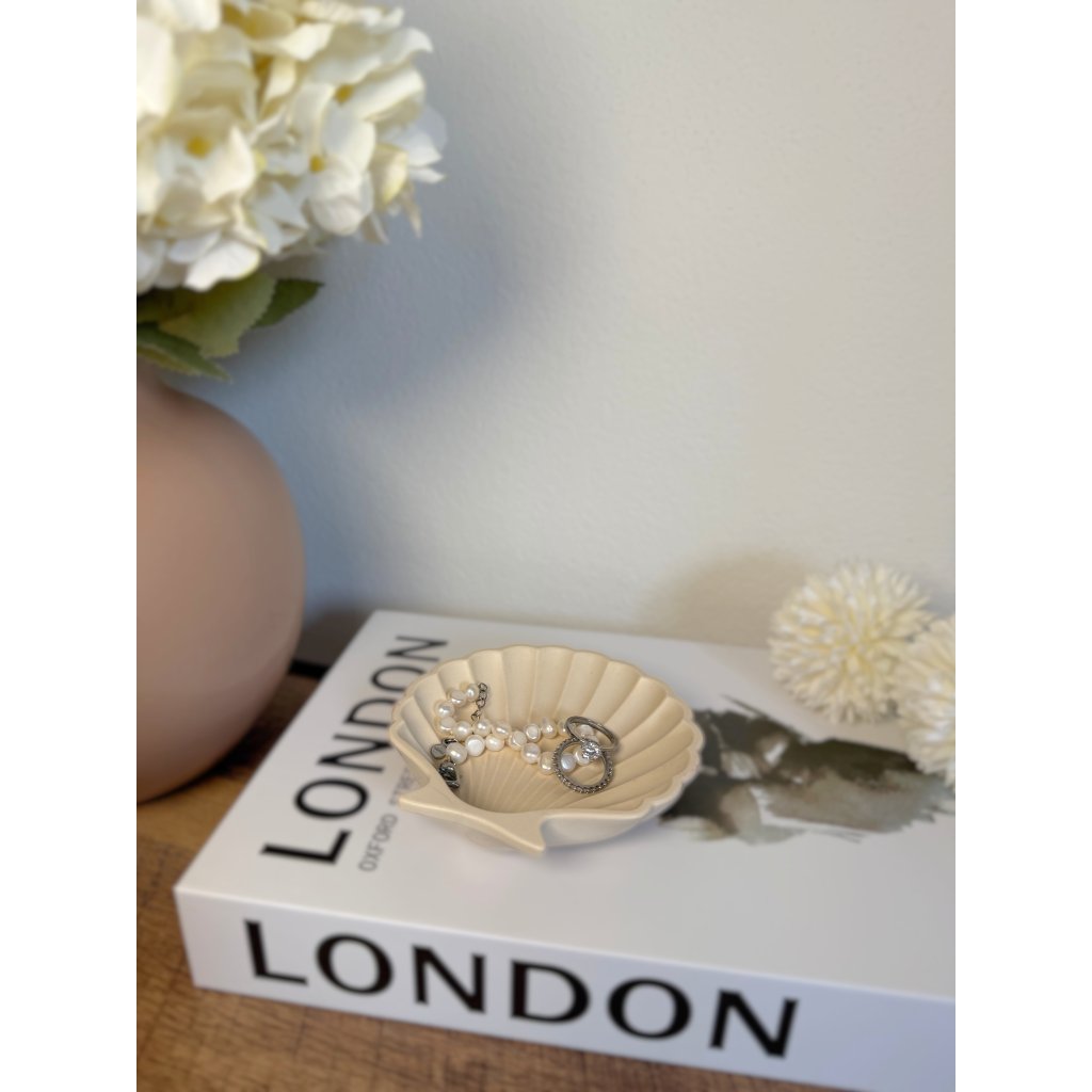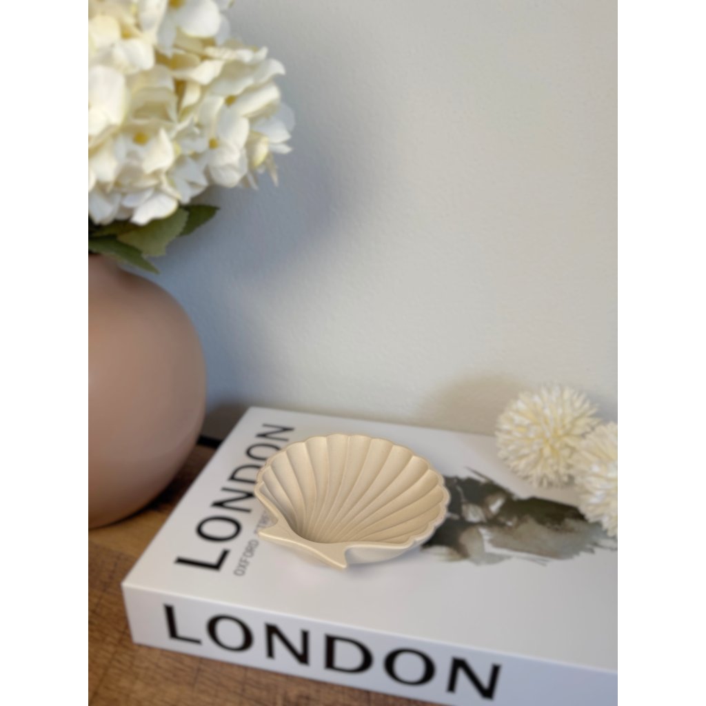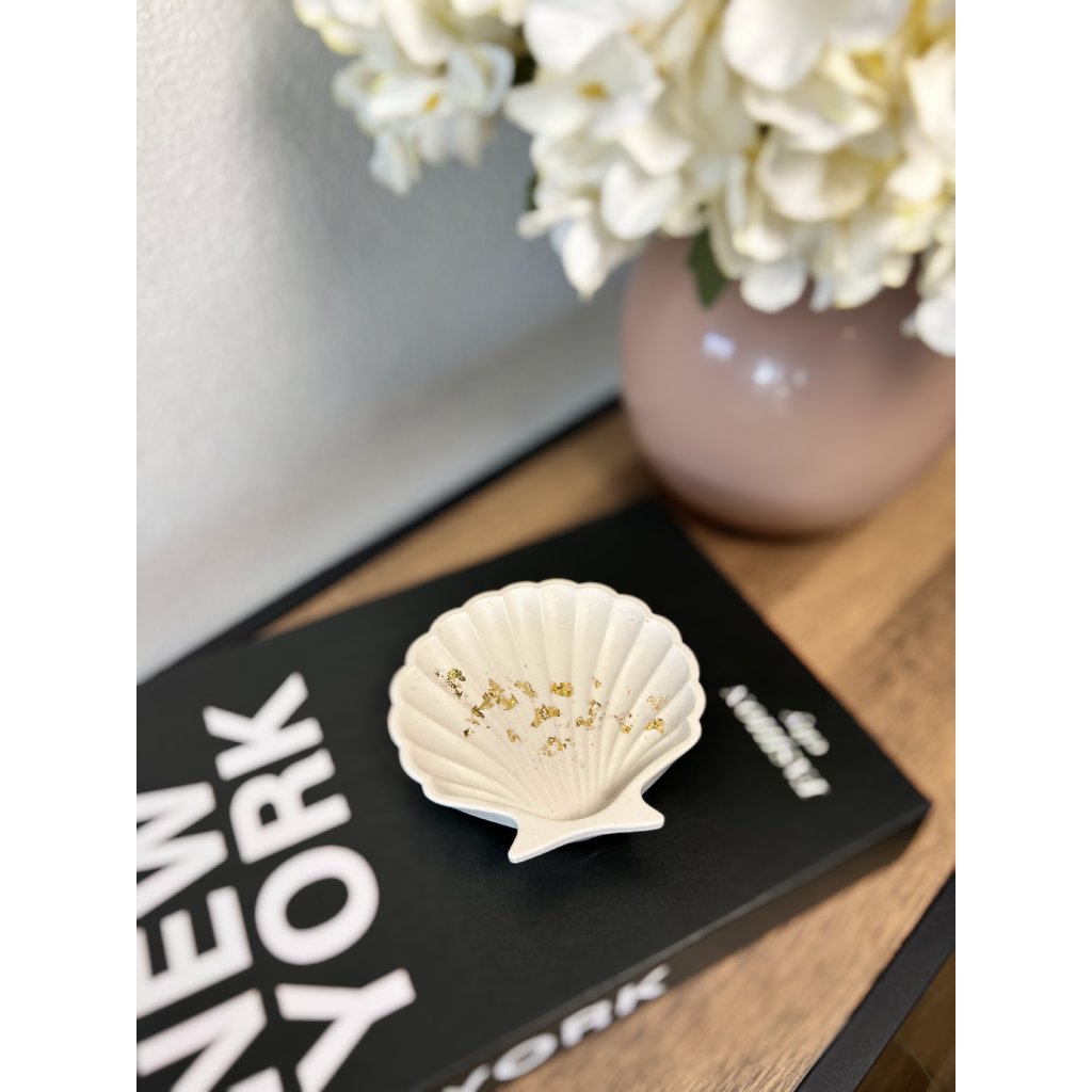 Ručne vyrábaný podtácok v tvare mušle z jesmonitu – každý kus je originál.