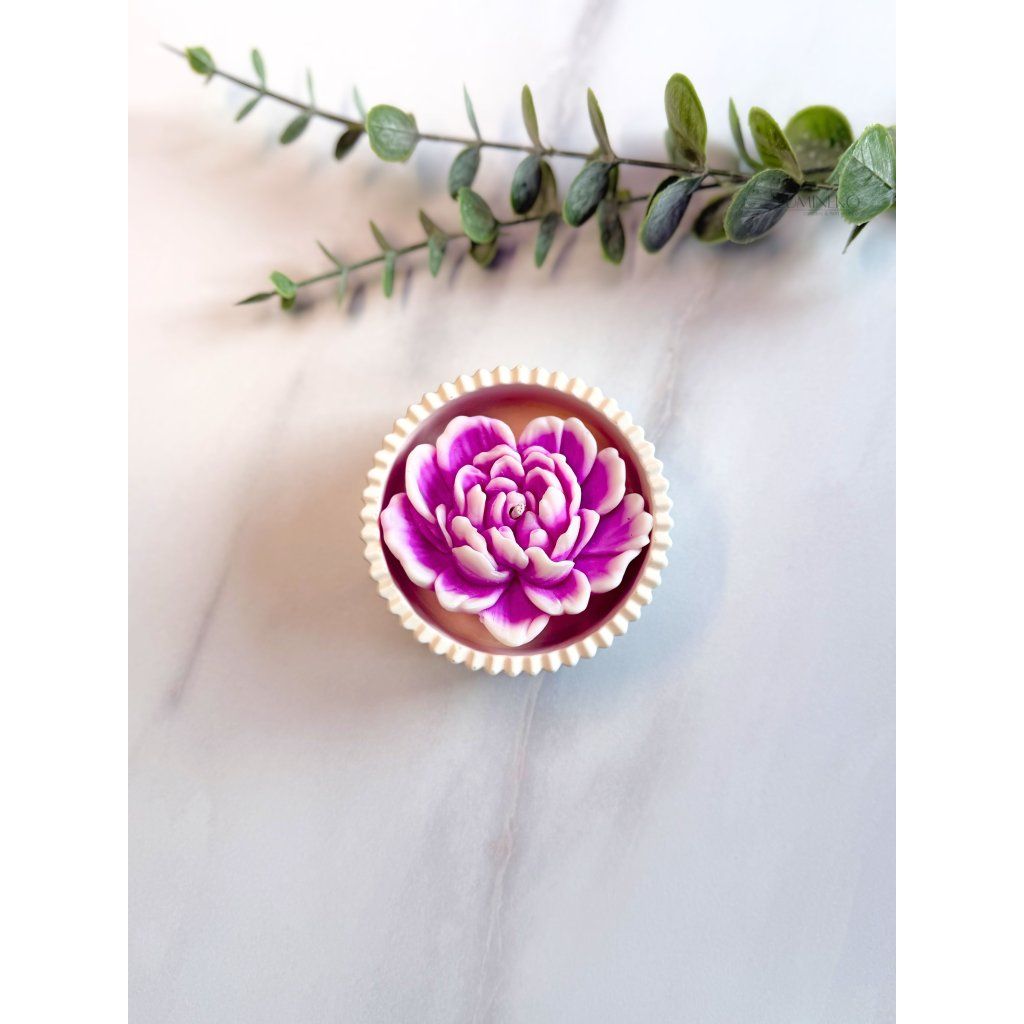 Ručne vyrábaná vonná sviečka zo sójového vosku v nádobke z jesmonitu. Sviečka je zdobená pivóniou, ktorá jej dodáva jemnú eleganciu a nádych romantiky. Pivónia je symbolom lásky, krásy a hojnosti.