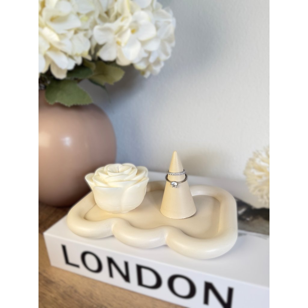 Ručne vyrábaný stojan na prstene z jesmonitu – každý kus je originál.