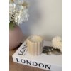 Ručne vyrábaná dizajnová sviečka z kokosového vosku v originálnej nádobke z jesmonitu.