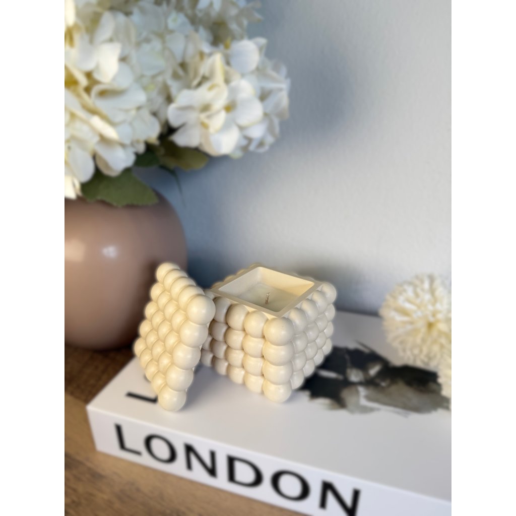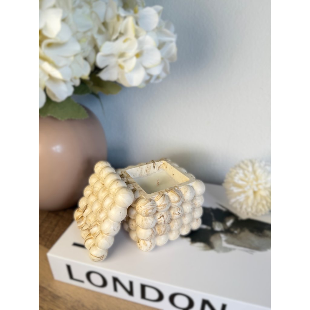 Sviečka je ručne odliata v originálnej nádobe z jesmonitu – moderného, ekologického minerálneho materiálu, ktorý je známy svojou pevnosťou, ľahkosťou a originálnou textúrou. Vďaka ručnej výrobe je každý kus jedinečný – jemné rozdiely vo farbe alebo štruktúre sú prirodzenou súčasťou a dodávajú produktu autentický charakter. Po dohorení sviečky môžete nádobku znovu využiť – ako dekoráciu, šperkovničku alebo úložný priestor na drobnosti.
