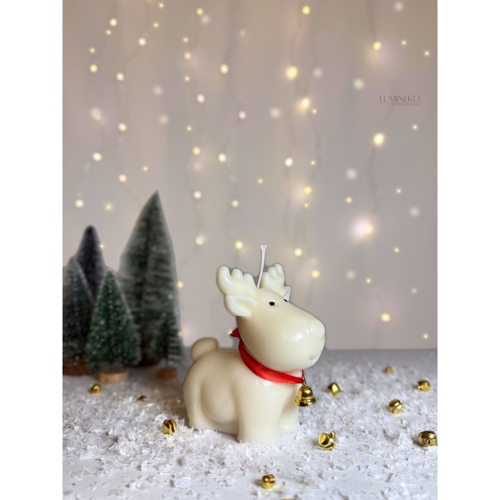 Ručne odlievaná vianočná sviečka v tvare soba. Vyrobená z prírodného sójového vosku pre chvíle naplnené teplom, svetlom a kúzlom Vianoc.
