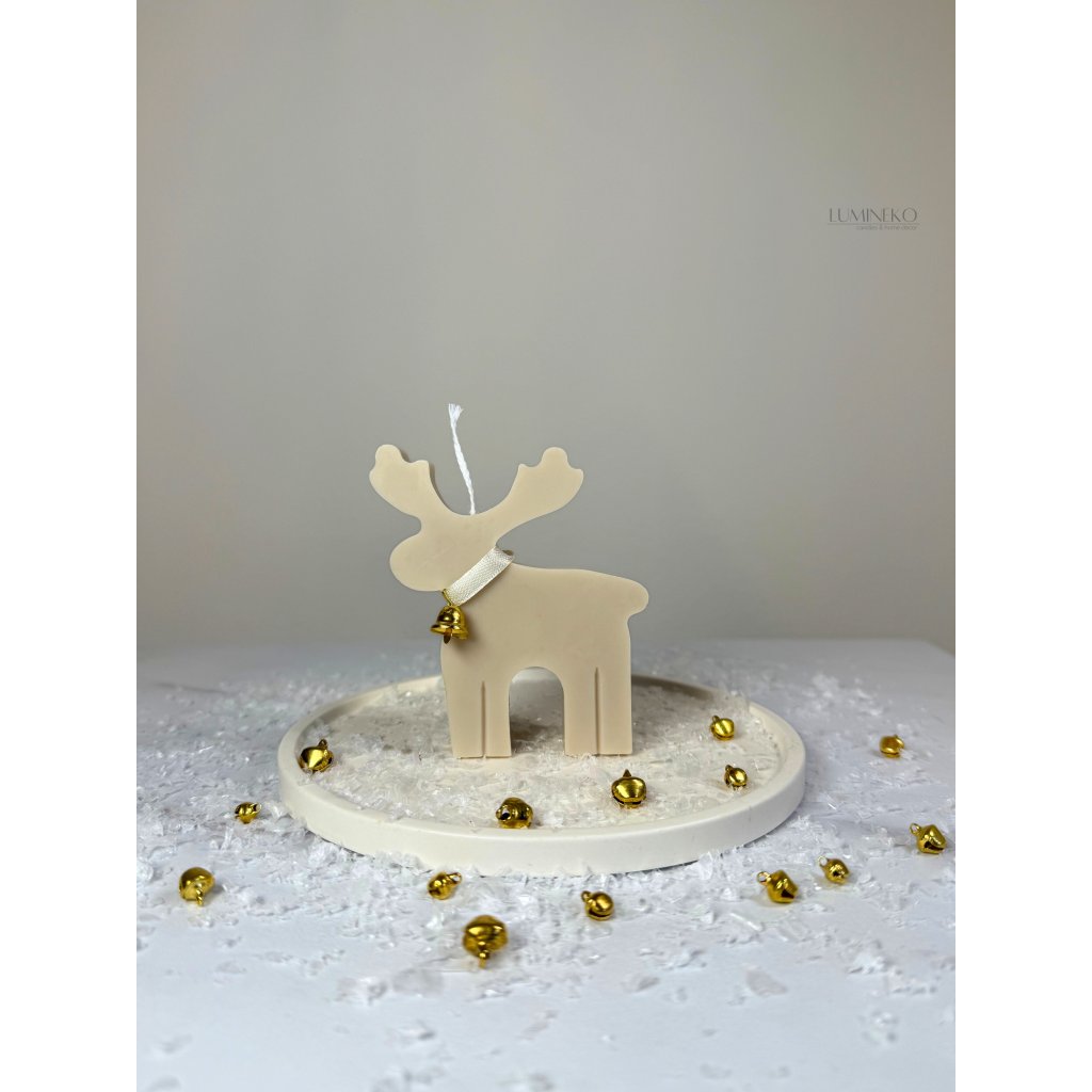 Ručne odlievaná vianočná sviečka v tvare soba. Vyrobená z prírodného sójového vosku pre chvíle naplnené teplom, svetlom a kúzlom Vianoc.
