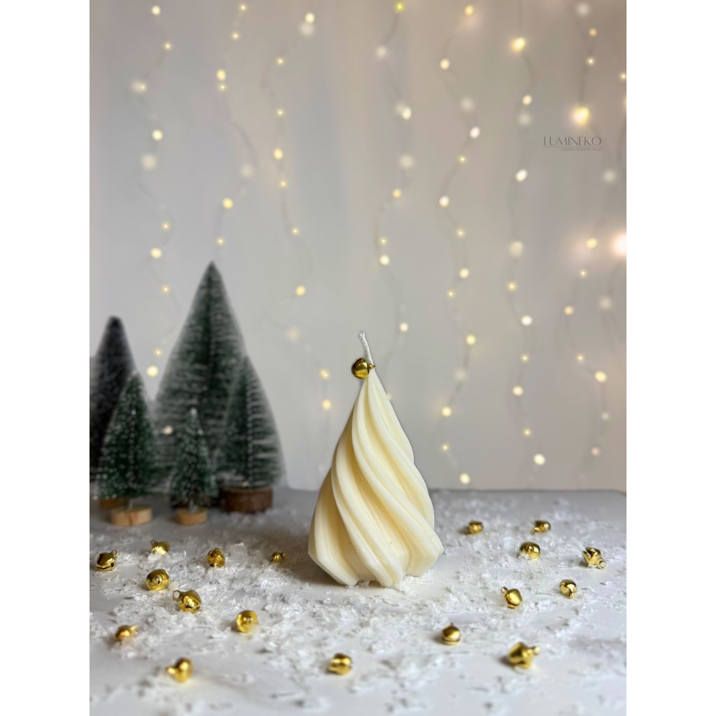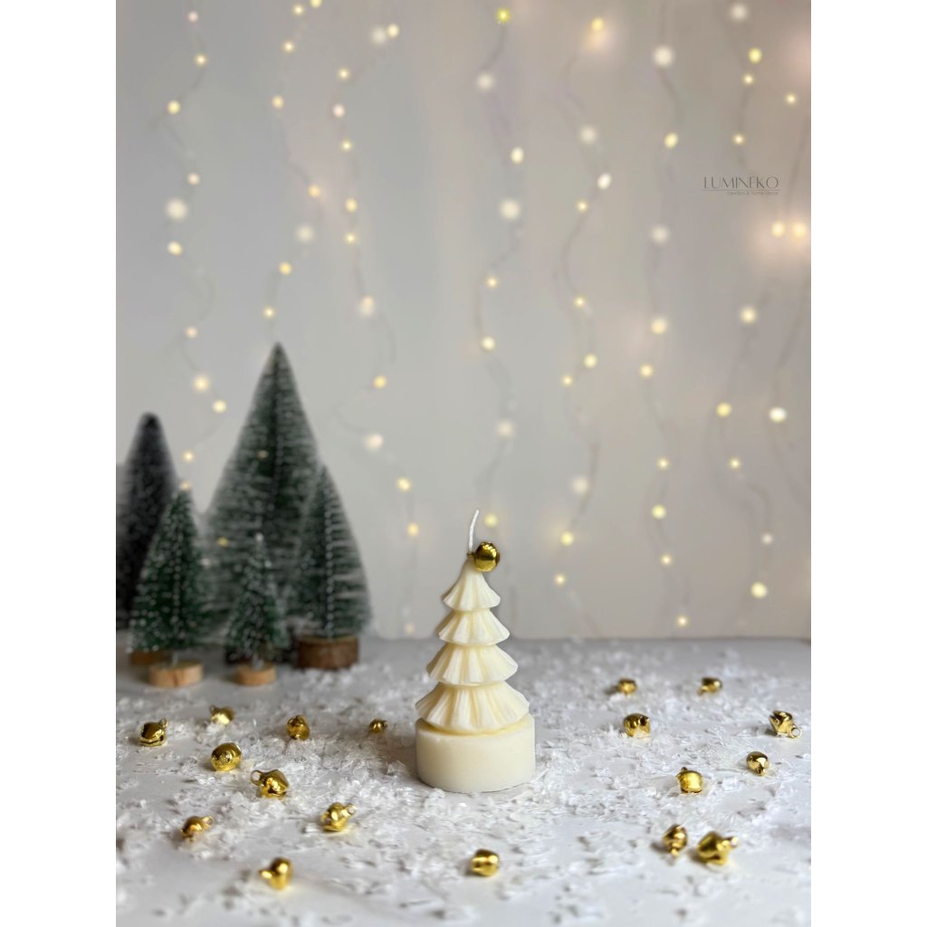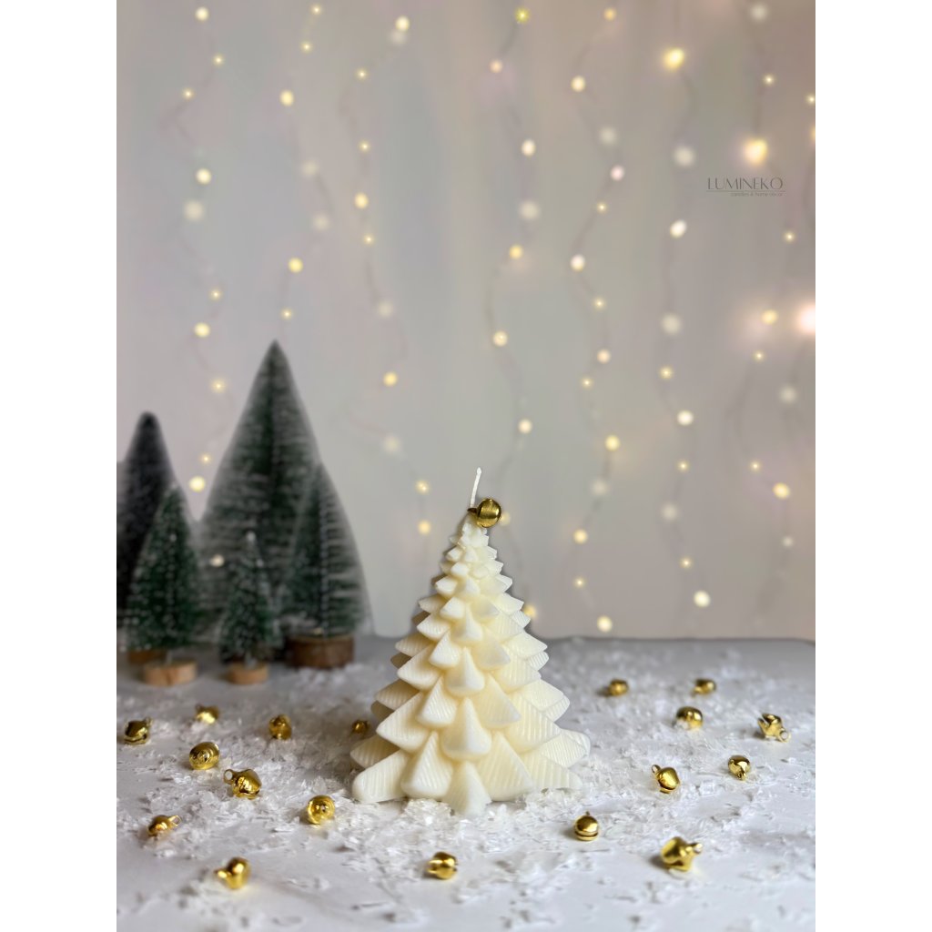Ručne odlievaná dekoratívna vianočná sviečka v tvare stromčeka. Vyrobená z prírodného sójového vosku pre chvíle naplnené teplom, svetlom a kúzlom Vianoc.