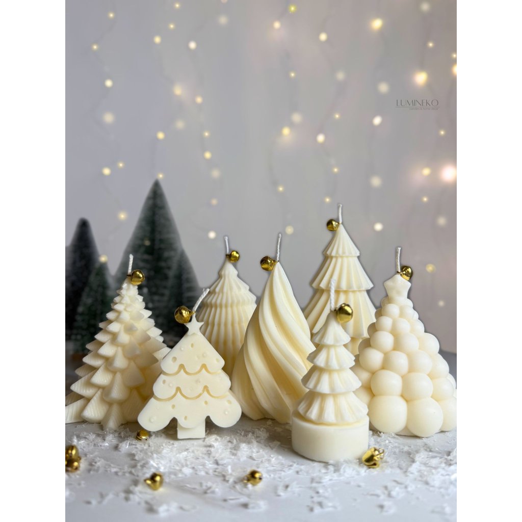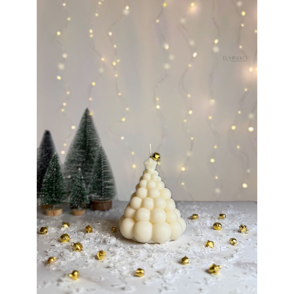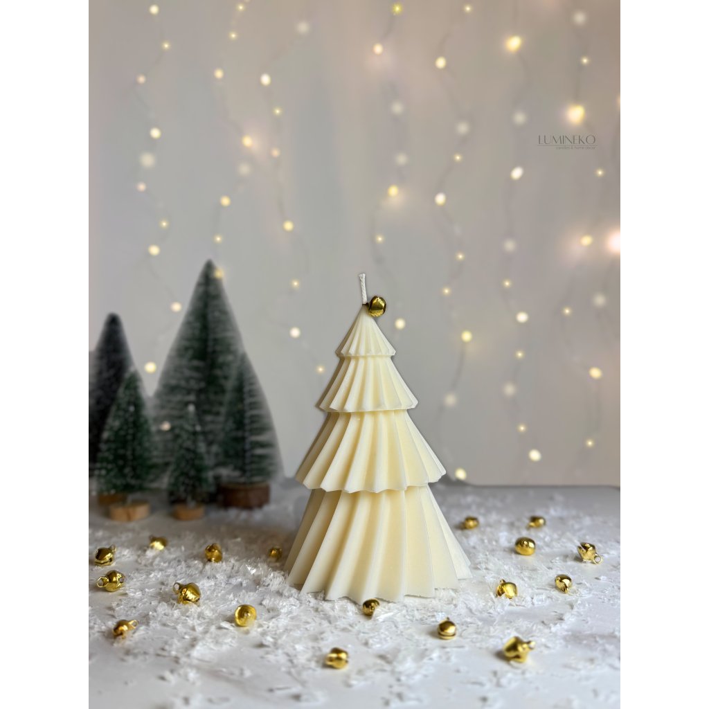 Ručne odlievaná dekoratívna vianočná sviečka v tvare stromčeka. Vyrobená z prírodného sójového vosku pre chvíle naplnené teplom, svetlom a kúzlom Vianoc.