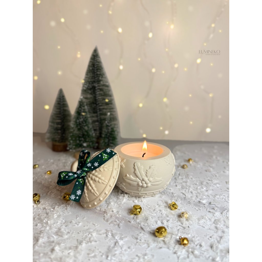Odlitá v originálnej jesmonitovej nádobke, ktorá vnesie do vášho domova teplo, vôňu a jedinečné kúzlo Vianoc.