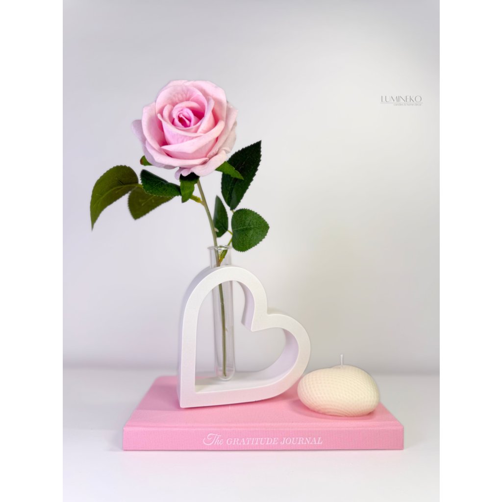 Súčasťou vázy je akrylová skúmavka, do ktorej môžete naliať vodu a vložiť čerstvý alebo sušený kvietok. Váza je ideálna ako jemná interiérová dekorácia, romantický detail na poličku či milý darček so symbolikou lásky.
