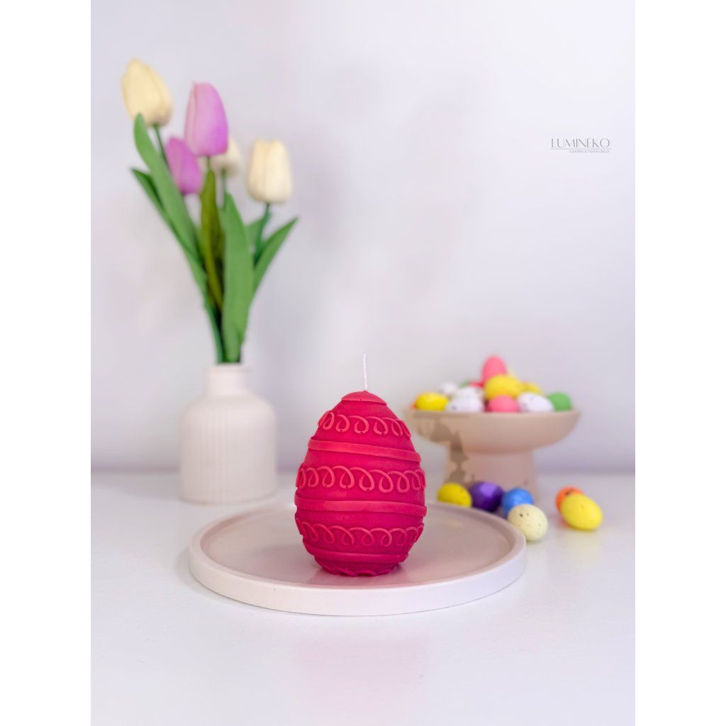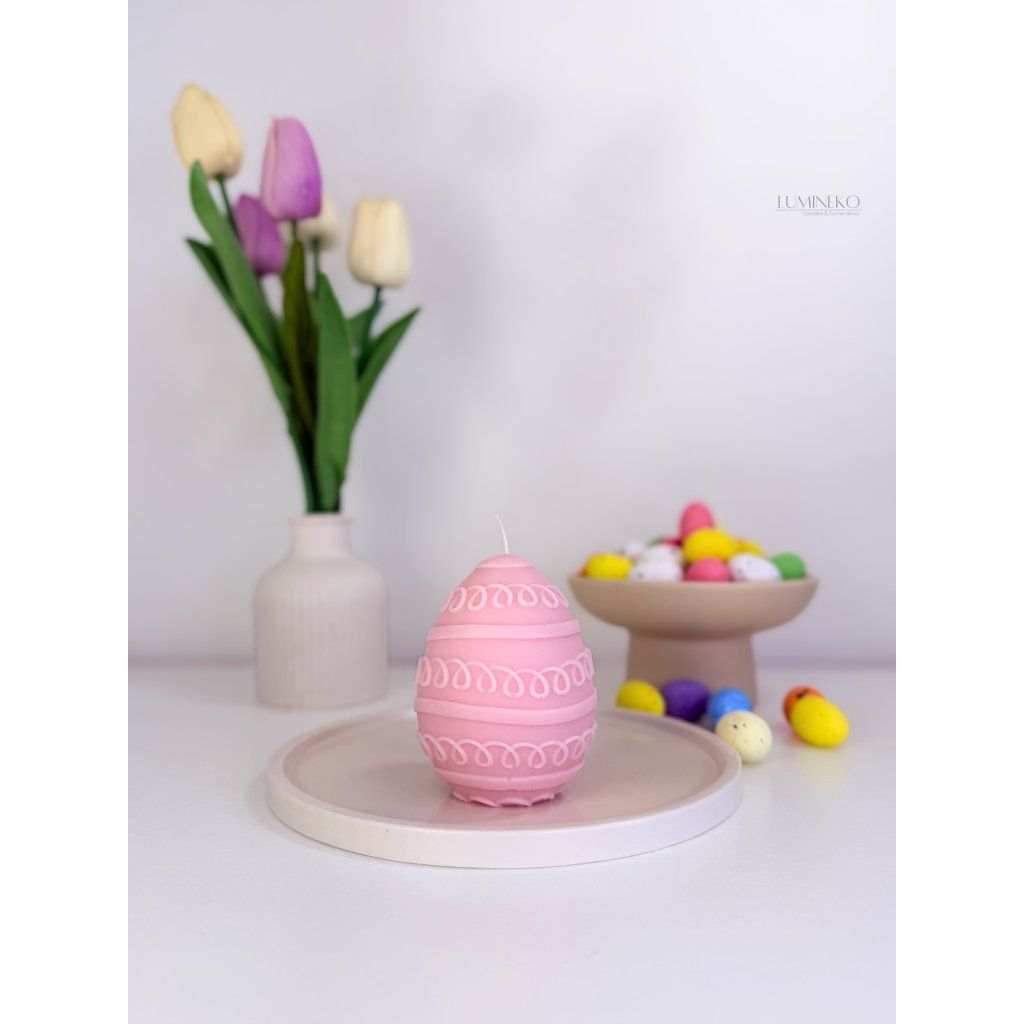 Ručne odlievaná veľkonočná sviečka v tvare vajíčka z prírodného sójového vosku.