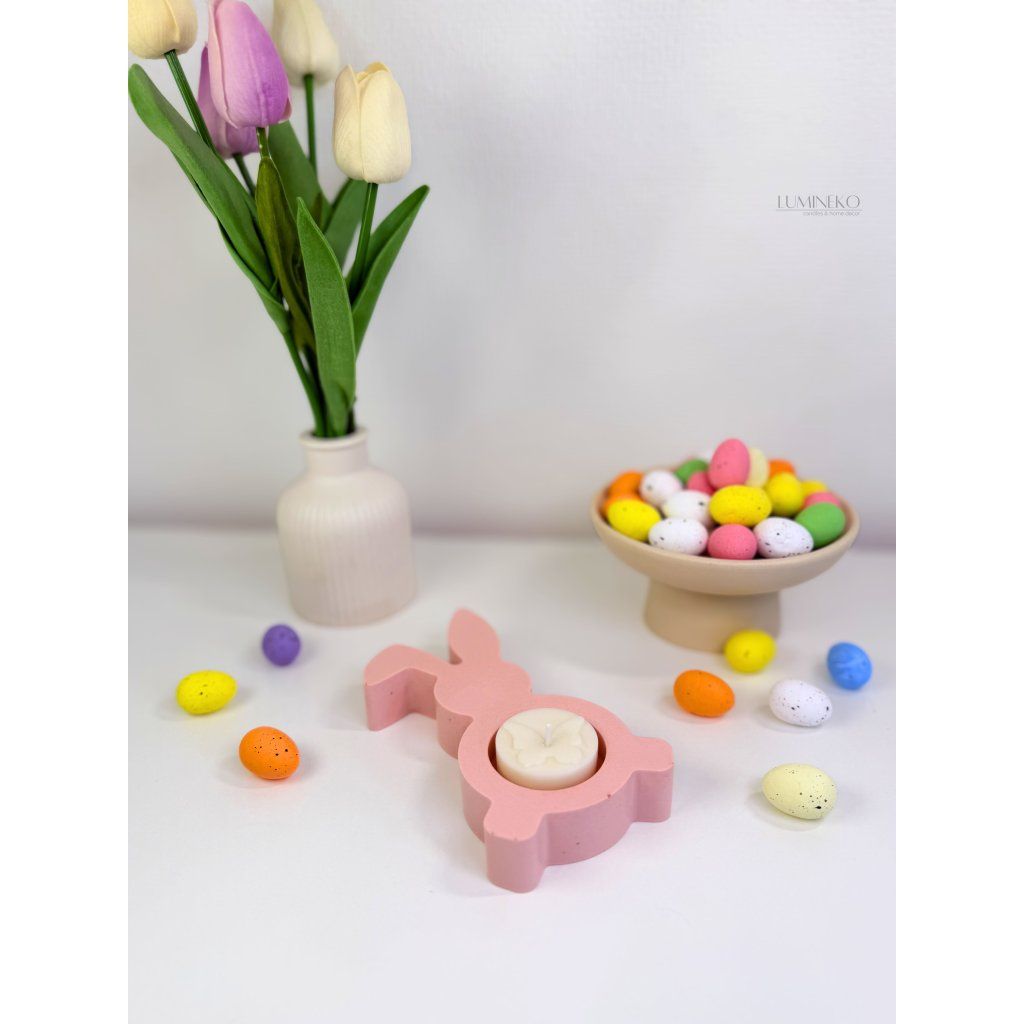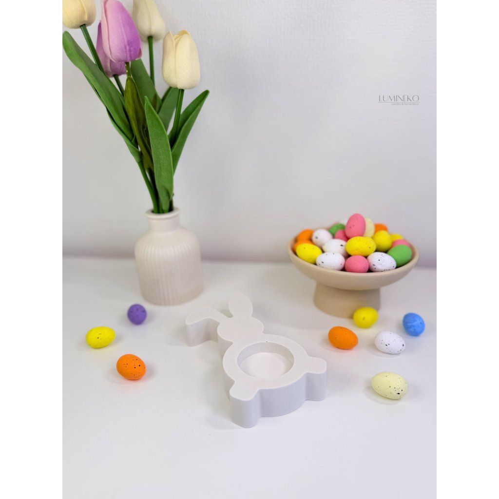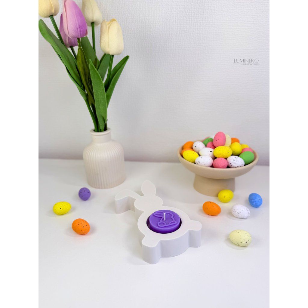 Ručne vyrábaný veľkonočný svietnik z jesmonitu v tvare zajačika.