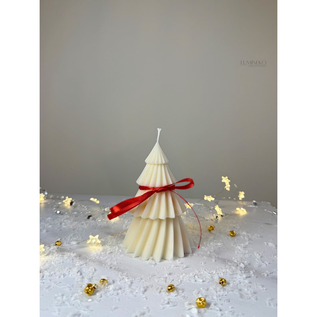 - Sviečka Stromček - Ručne odlievaná dekoratívna sviečka v tvare vianočného stromčeka. Vyrobená z prírodného sójového vosku, ktorý prináša jemné a čisté horenie.
