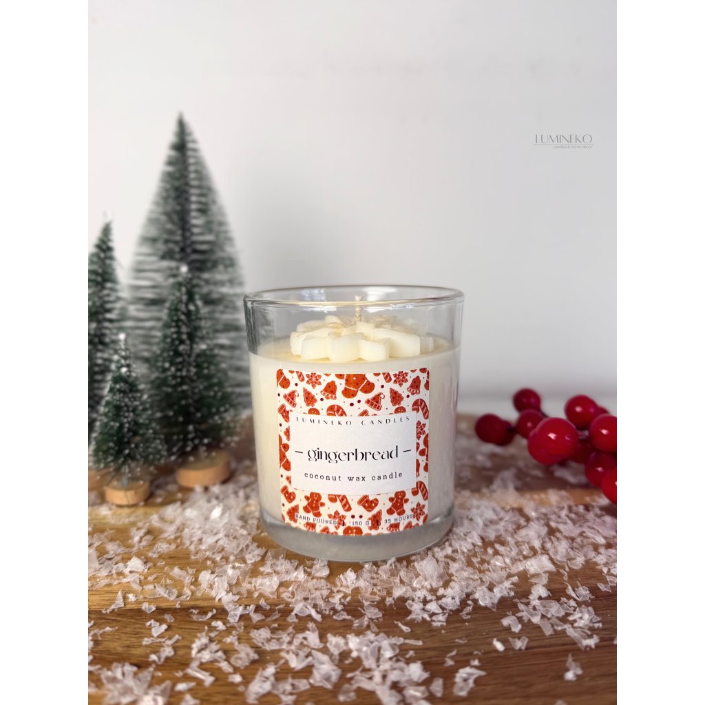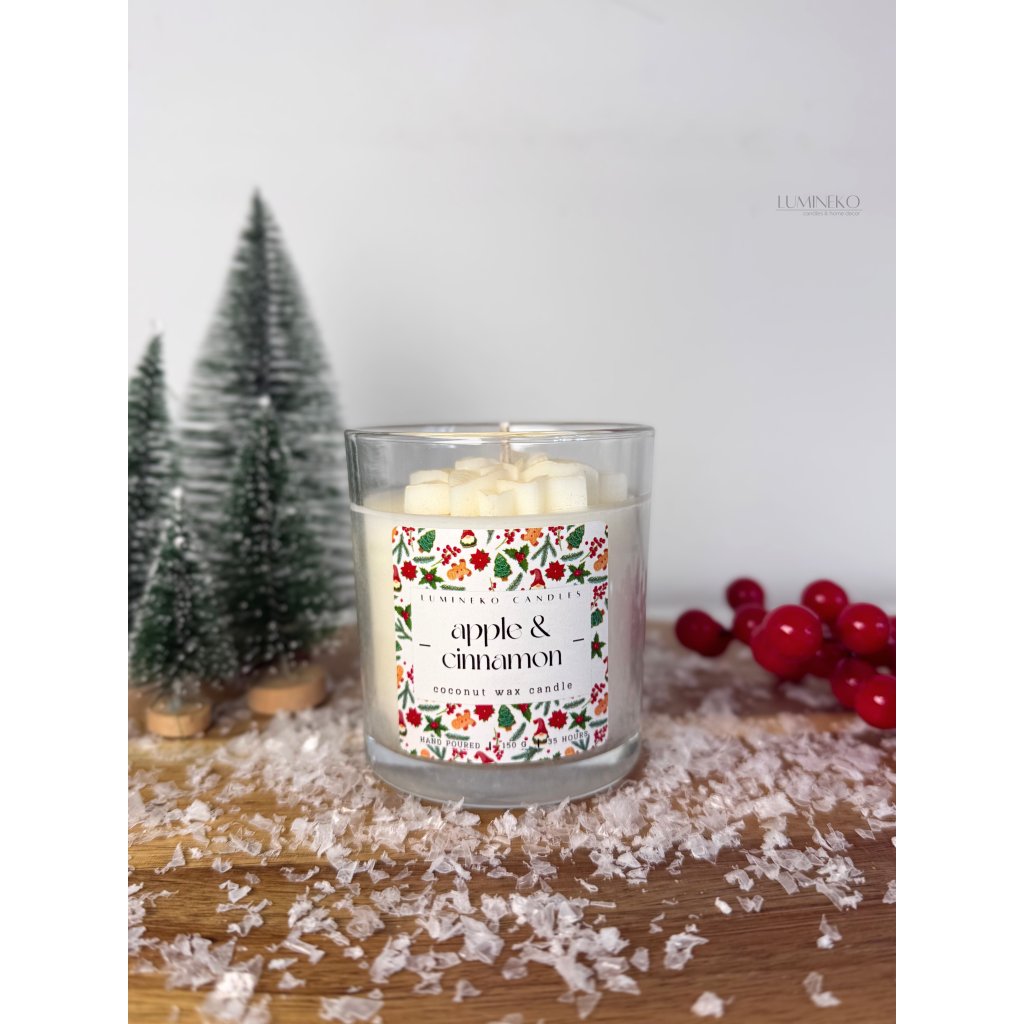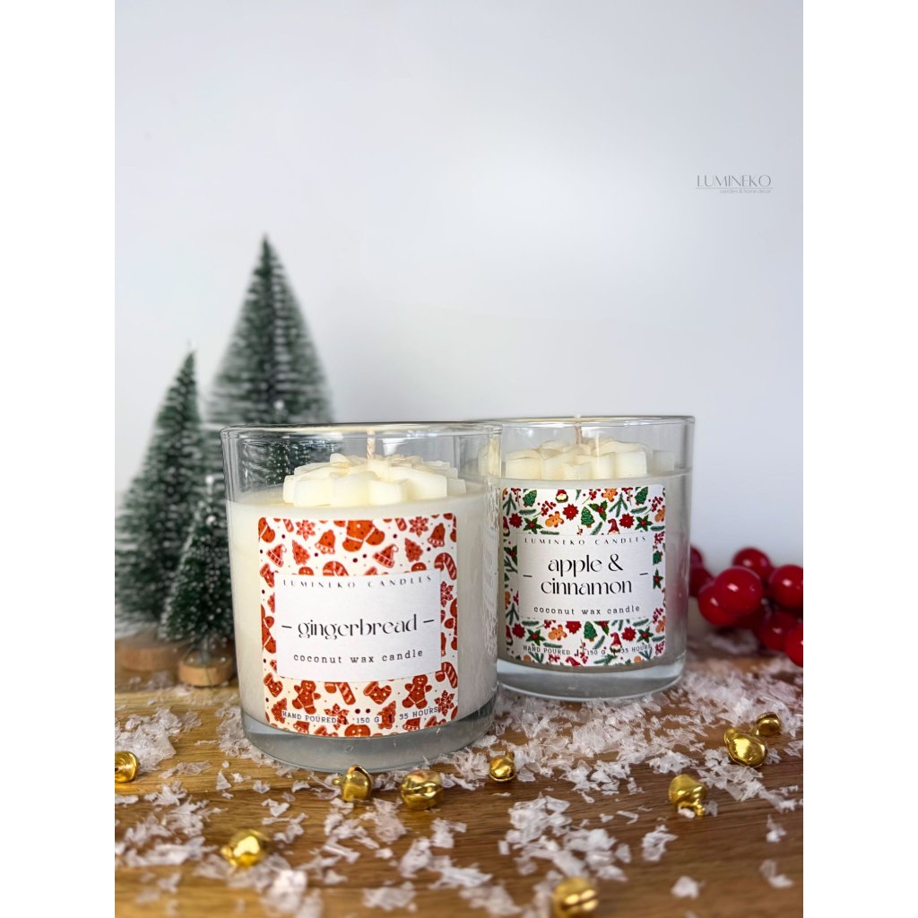 Ručne vyrábaná sviečka z kokosového vosku v elegantnej sklenenej nádobe s jemnou vianočnou vôňou, ktorá prevoňá váš domov a prinesie pravú vianočnú atmosféru.